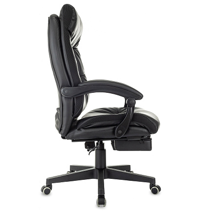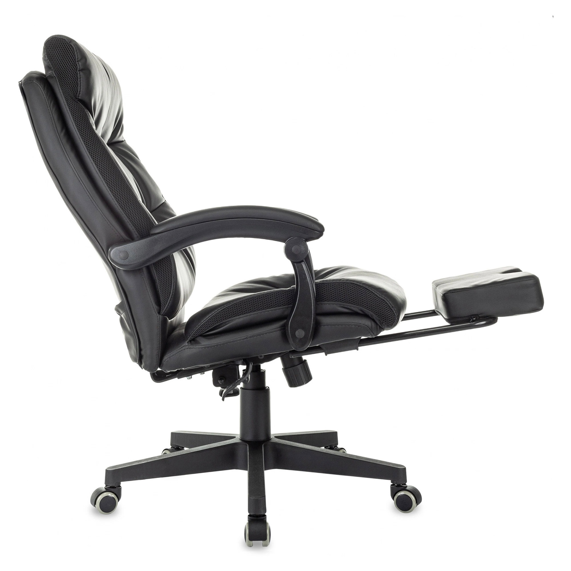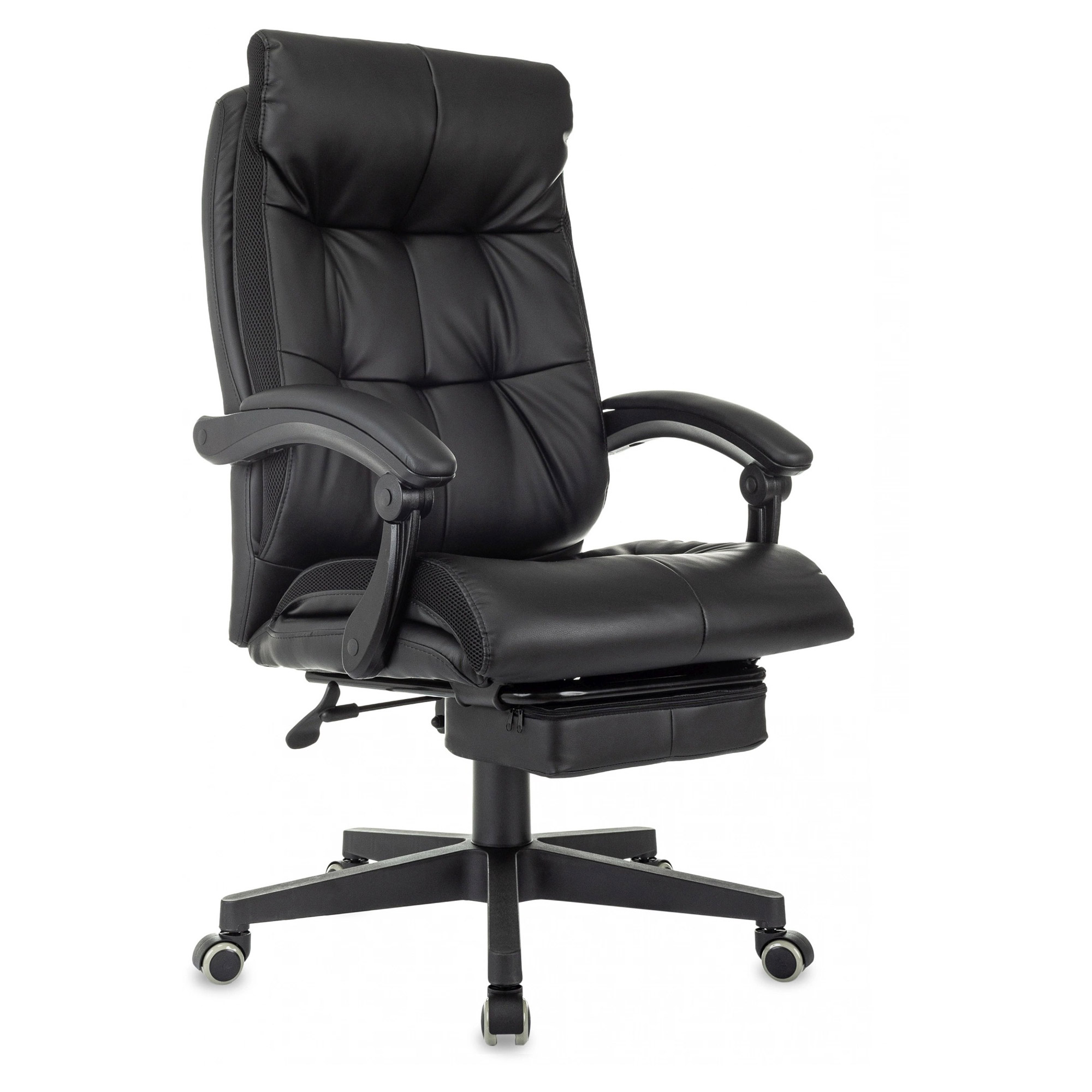 Кресло руководителя CH-824MSG-BF — солидное кресло с комбинированной обивкой из экокожи и ткани, подставкой для ног и подвижными подлокотниками.