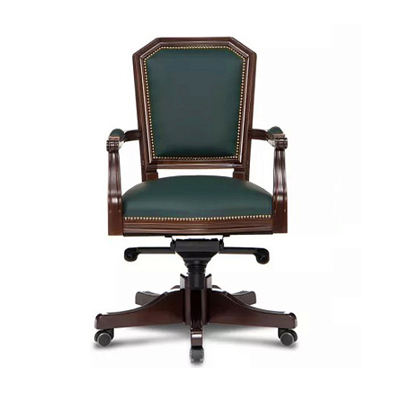 D80 Венеция Кресло для руководителя кожа/дерево, зеленый / темный орех