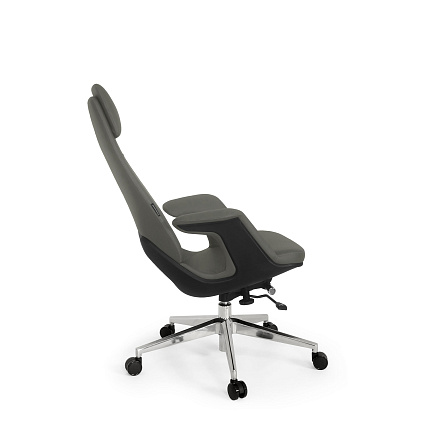 Кресло для руководителя LF0-PY38 — солидное кресло с комбинированной обивкой из натуральной кожи и экокожи, алюминиевой крестовиной, регулируемым подголовником и и литым каркасом.