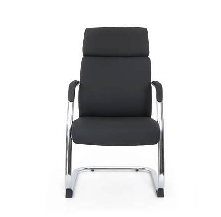Кресло для посетителей LF0-PYB15-3 — комфортное кресло с обивкой из экокожи и металлическими полозьями с четырьмя подпятниками.