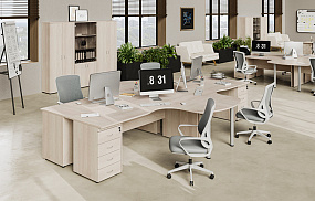 Перед покупкой определите количество рабочих мест и уточните площадь офиса, бюро или коворкинга. От этого будут зависеть габариты столов, тумб и пр.