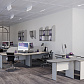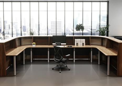 - Металлический каркас столов состоит из двух «L»-образных опор, соединенных траверсом. Траверс и опоры каркаса выполнены из штампованного металла с износостойким порошковым покрытием цвета «алюминий матовый». Метод сборки составных частей металлокаркаса — болтовое соединение. Каждая опора каркаса имеет внутренний кабель-канал для прокладки кабелей подключения.