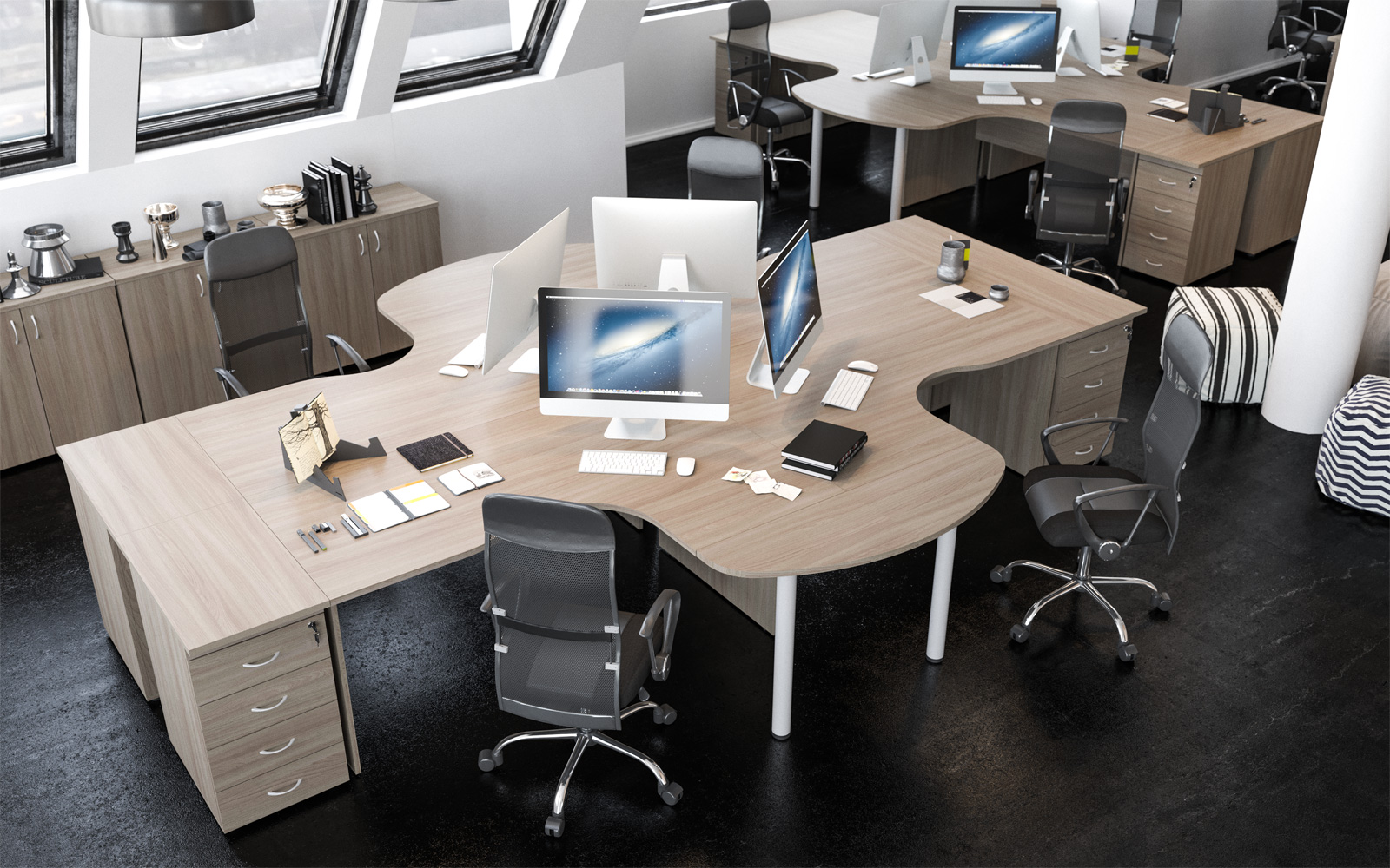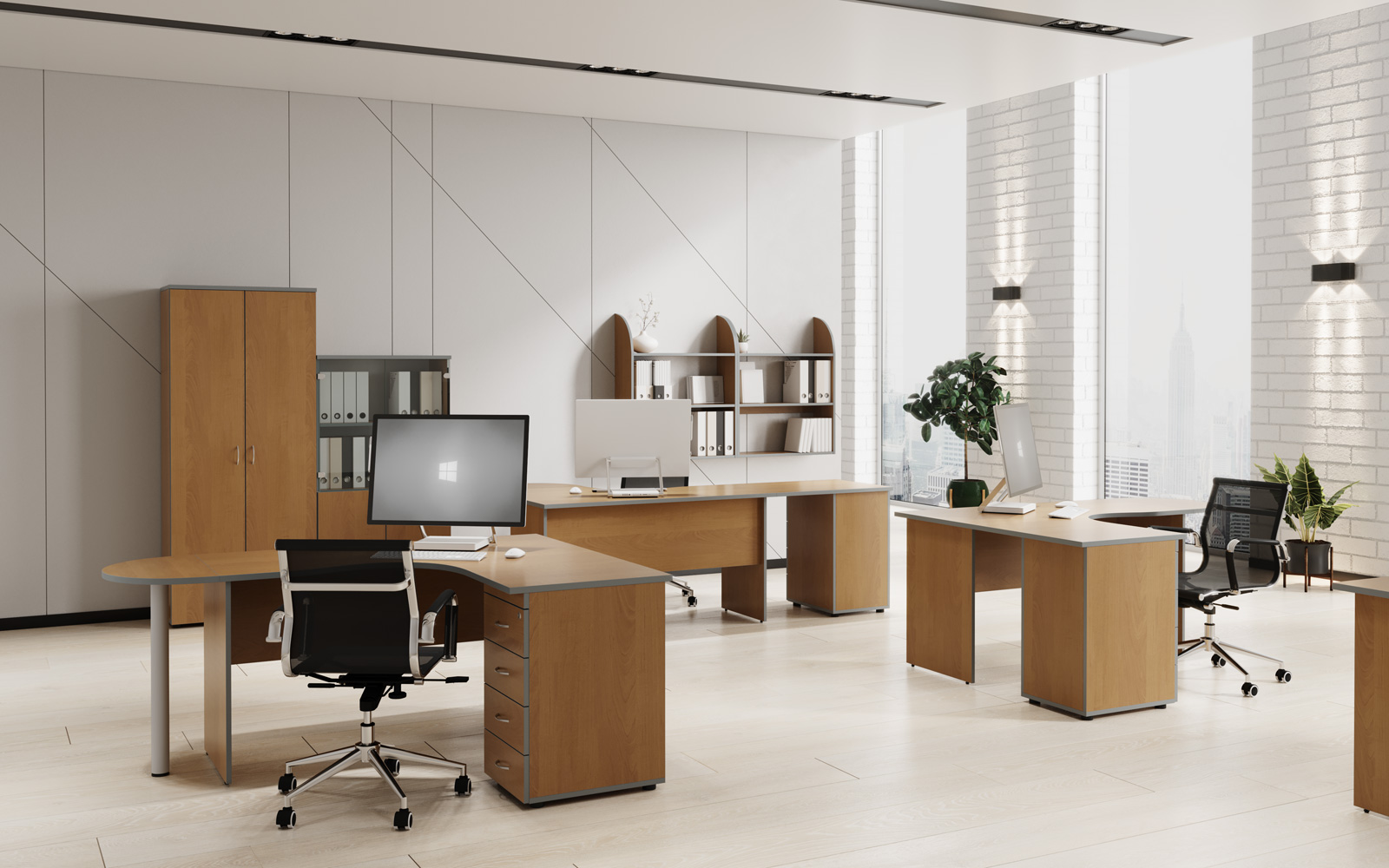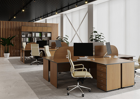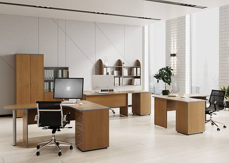 Мебель для персонала «Агат» — это идеальное соотношение функциональности и внешнего вида, цены и качества. Коллекция выполнена в традиционном офисном стиле, а актуальный внешний вид ей придают современные материалы и популярные цветовые решения. Широкий модельный ряд позволяет оборудовать рабочие места сотрудников и руководителей отделов, конференц-залы, переговорные комнаты и зоны ресепшен. Рабочее место комплектуется как конструктор, выбор основных и дополнительных элементов понятен и прост. И всё это — по оптимальной цене.
