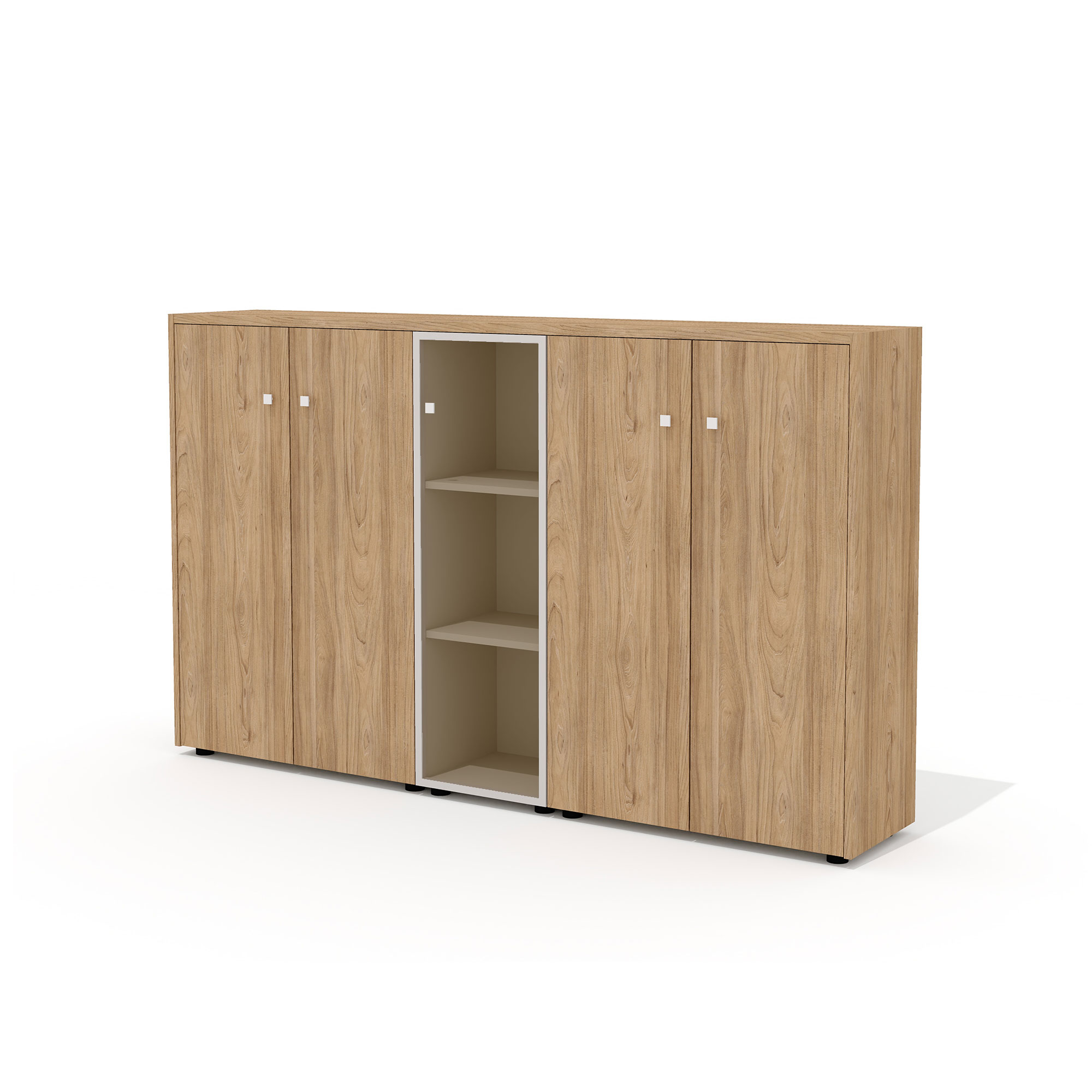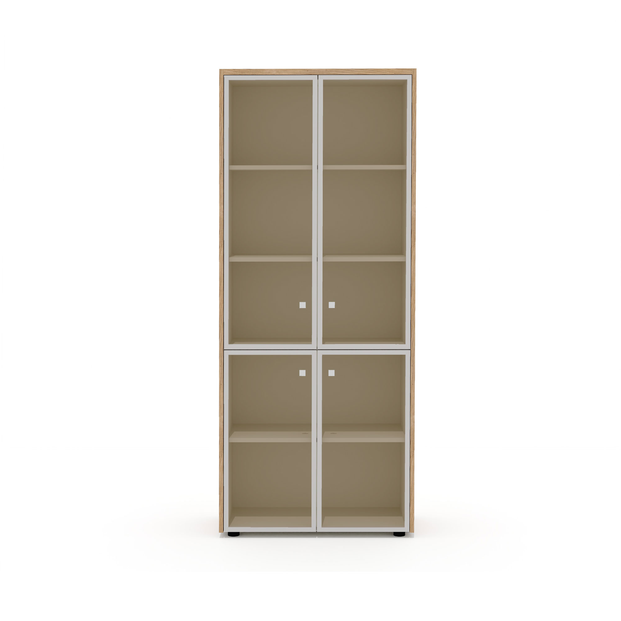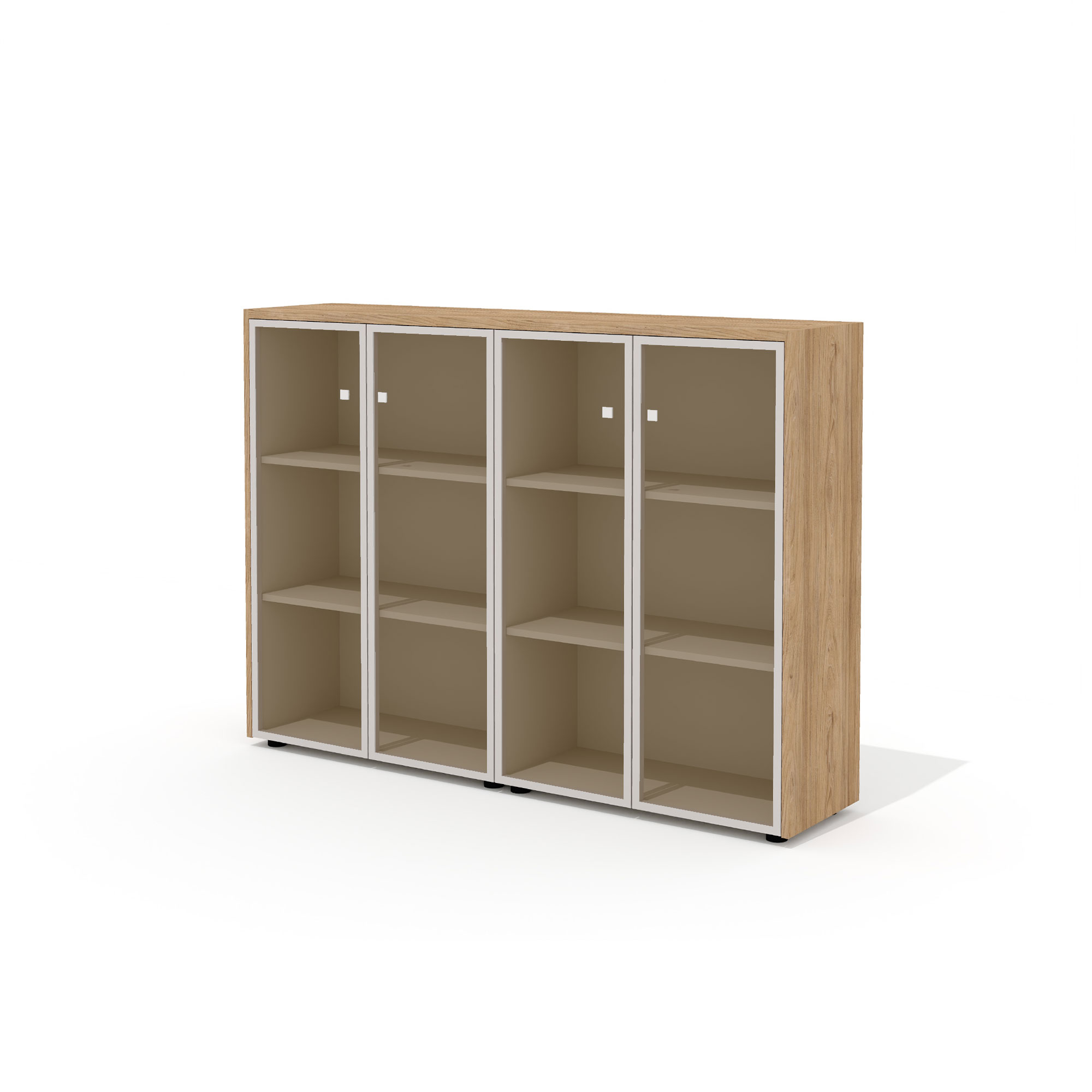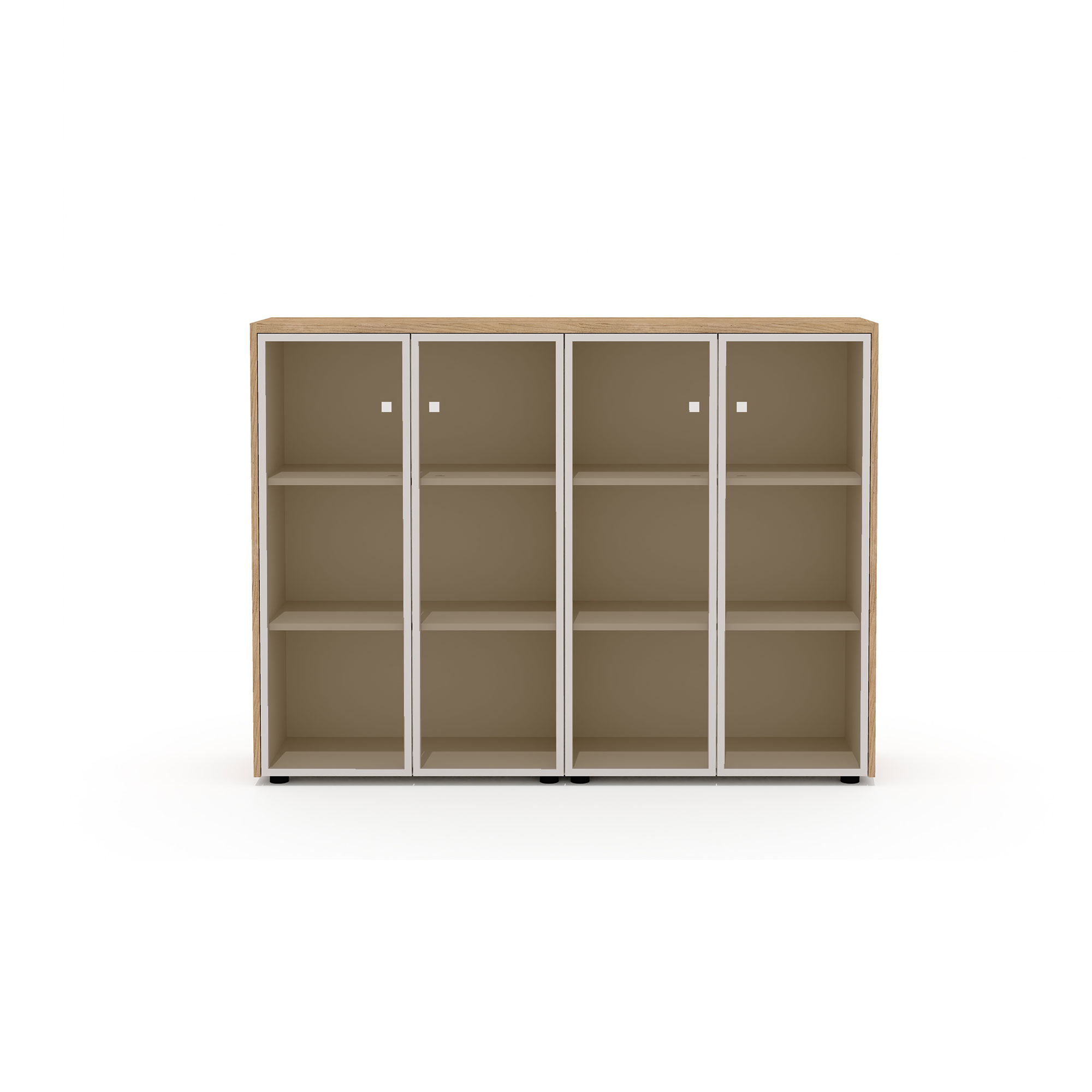 - В стеллажах предусмотрена универсальная навеска дверей. Боковины стеллажей имеют присадку (отверстия) для возможности дополнительной комплектации стеклянными или глухими дверьми.