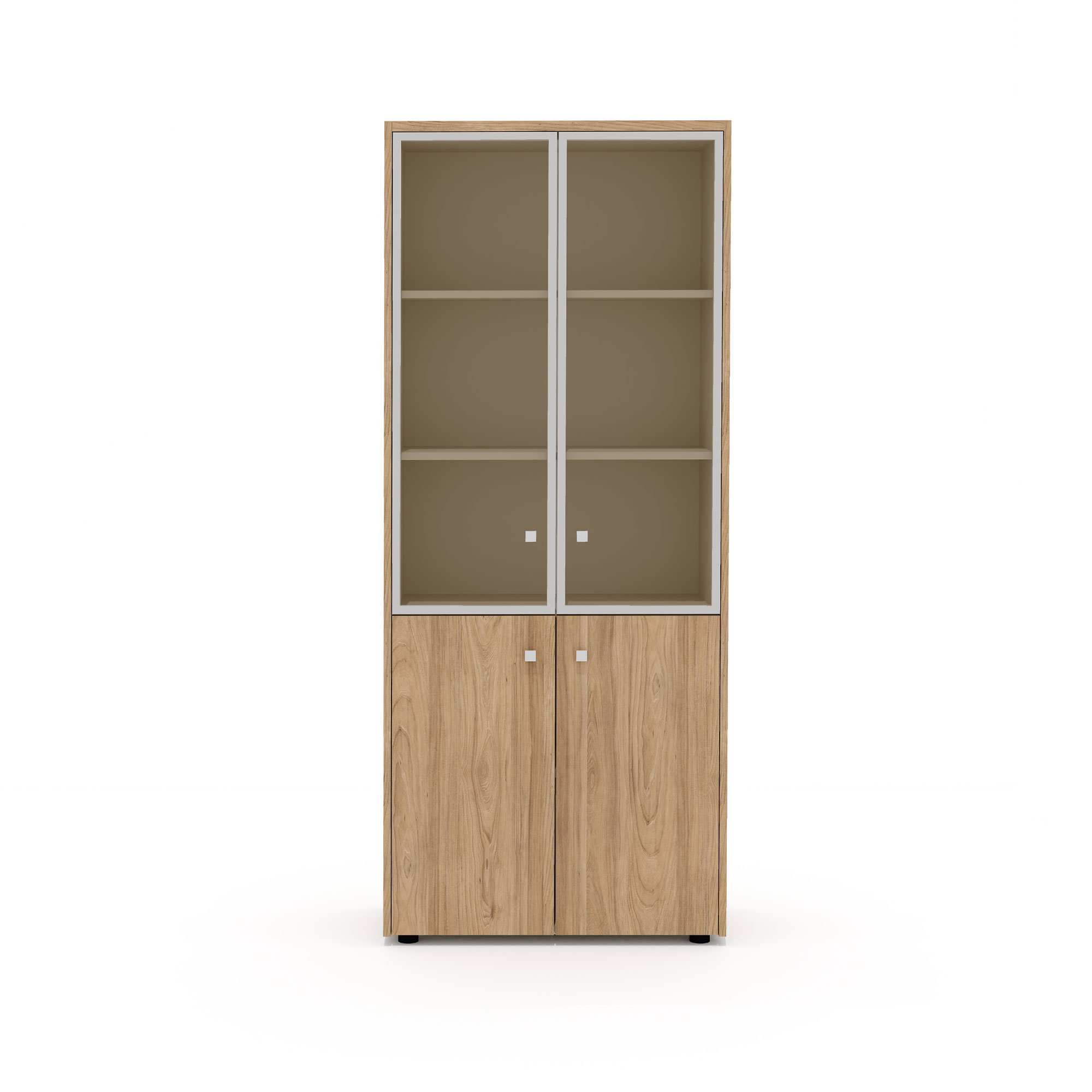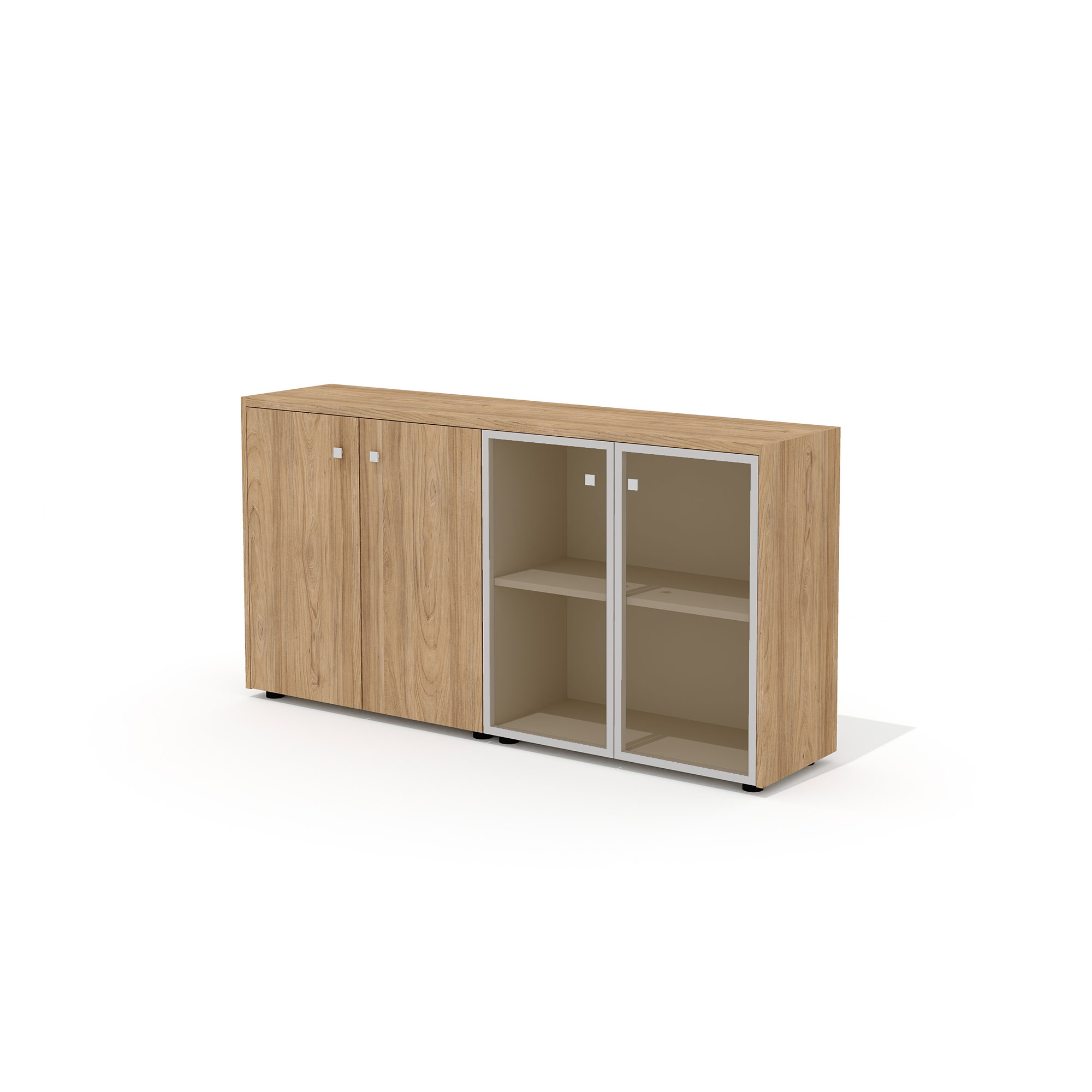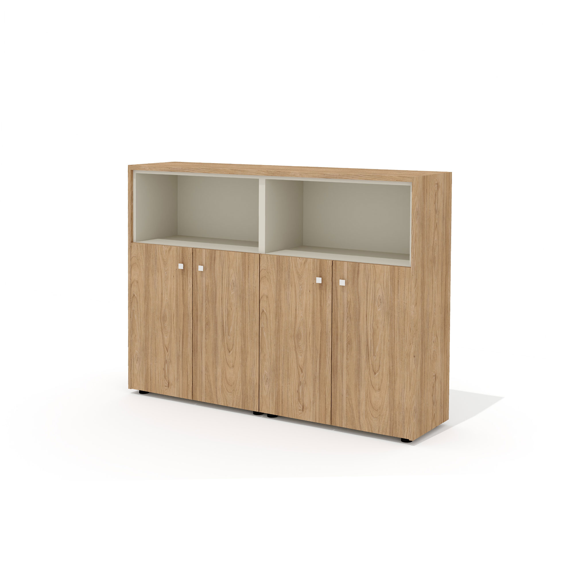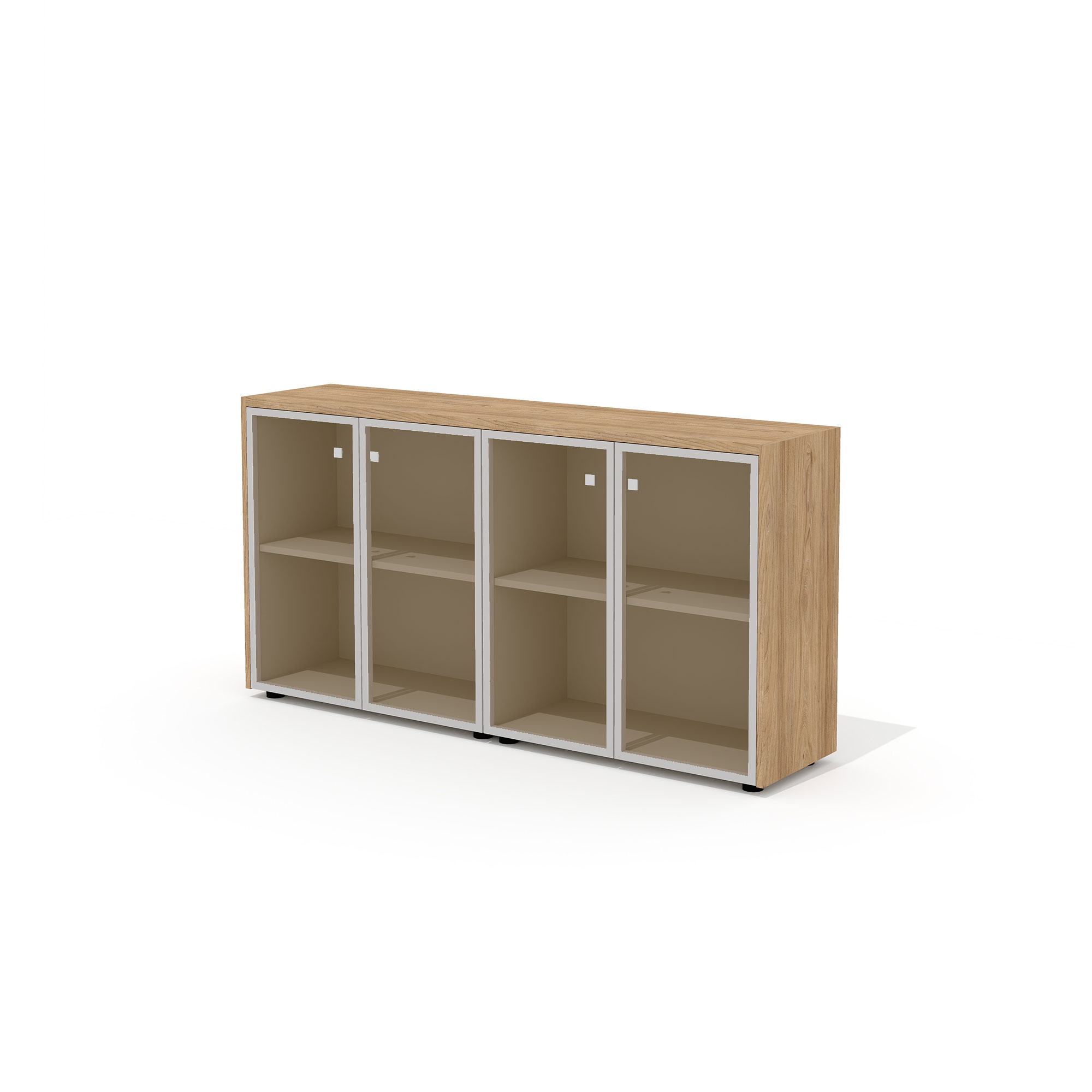 - В стеллажах предусмотрена универсальная навеска дверей. Боковины стеллажей имеют присадку (отверстия) для возможности дополнительной комплектации стеклянными или глухими дверьми.