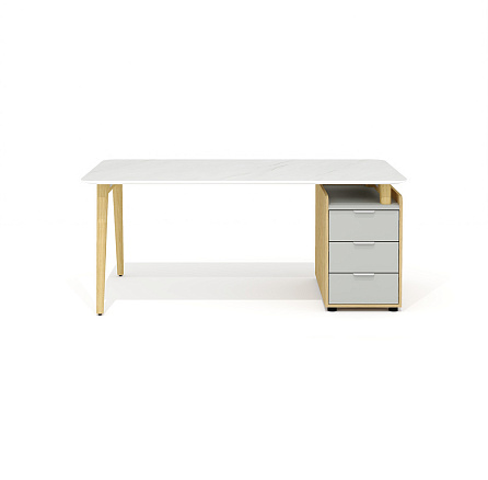 Rem-180.1R + Rem-32 Стол руководителя с опорной тумбой Remo мрамор белый / серый софт