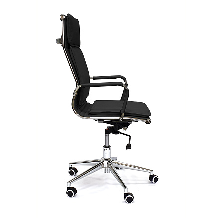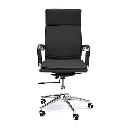 Кресло руководителя RT-06Q — кресло с обивкой из экокожи, с удобными накладками на сиденье, спинке и подголовнике. Хромированные подлокотники снабжены накладками из экокожи. Регулировка высоты и наклона.