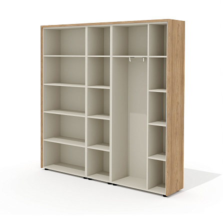 - Наполнение: отделение для одежды с полкой, выдвижной штангой и 4 полками, и 2 отделения с 4 полками (5-ю нишами).