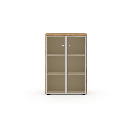 Шкаф для документов средний со стеклом (комплектация 15) Рио Директ швейцарский вяз / беж / стекло тонированное бронза