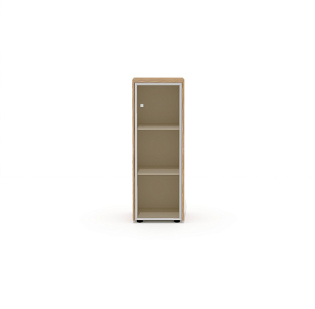 Шкаф для документов узкий средний со стеклом (комплектация 18) Рио Директ швейцарский вяз / беж / стекло тонированное бронза