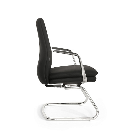 Кресло для посетителей LF0-PY51-2 — уютное кресло с обивкой из экокожи и металлическими полозьями с четырьмя подпятниками.