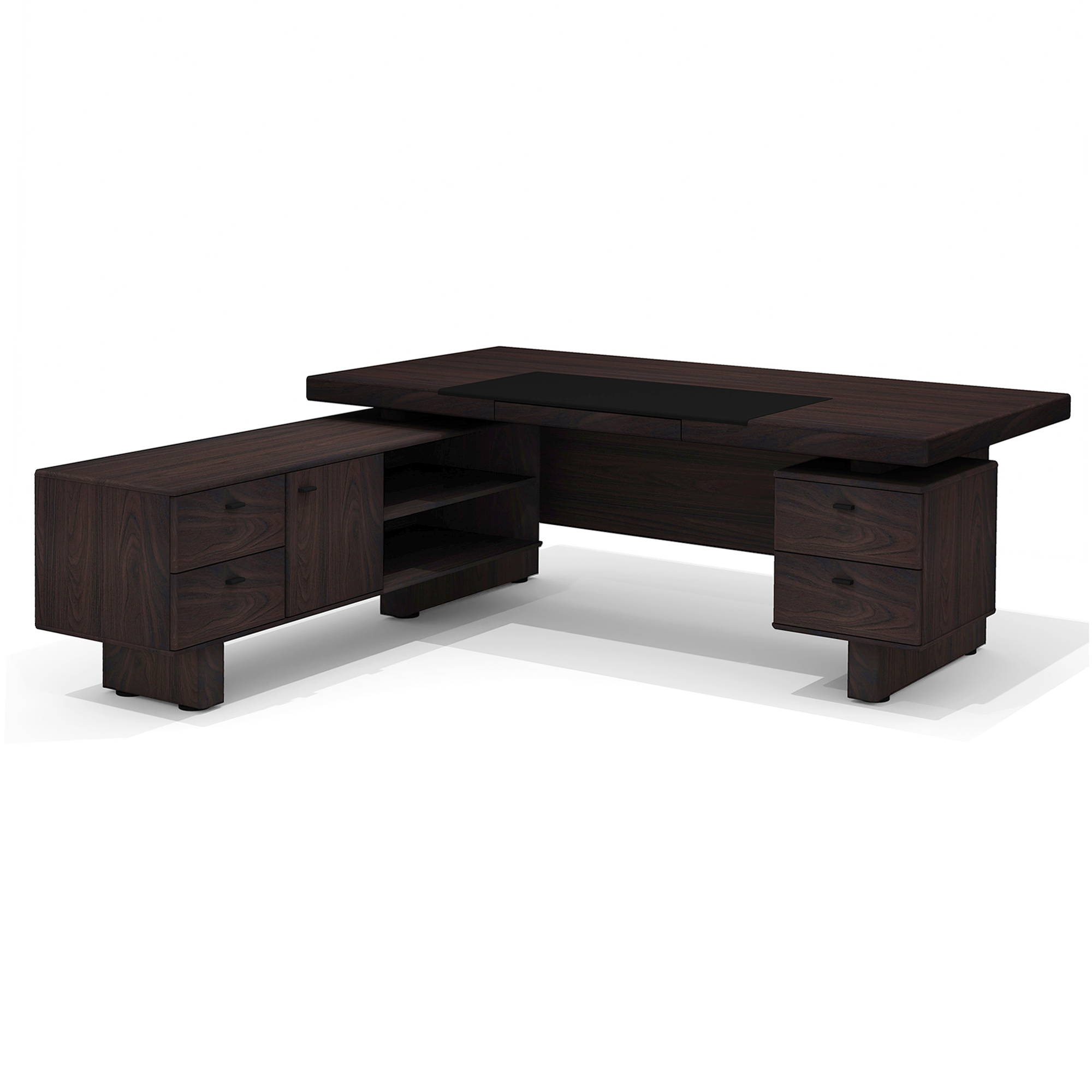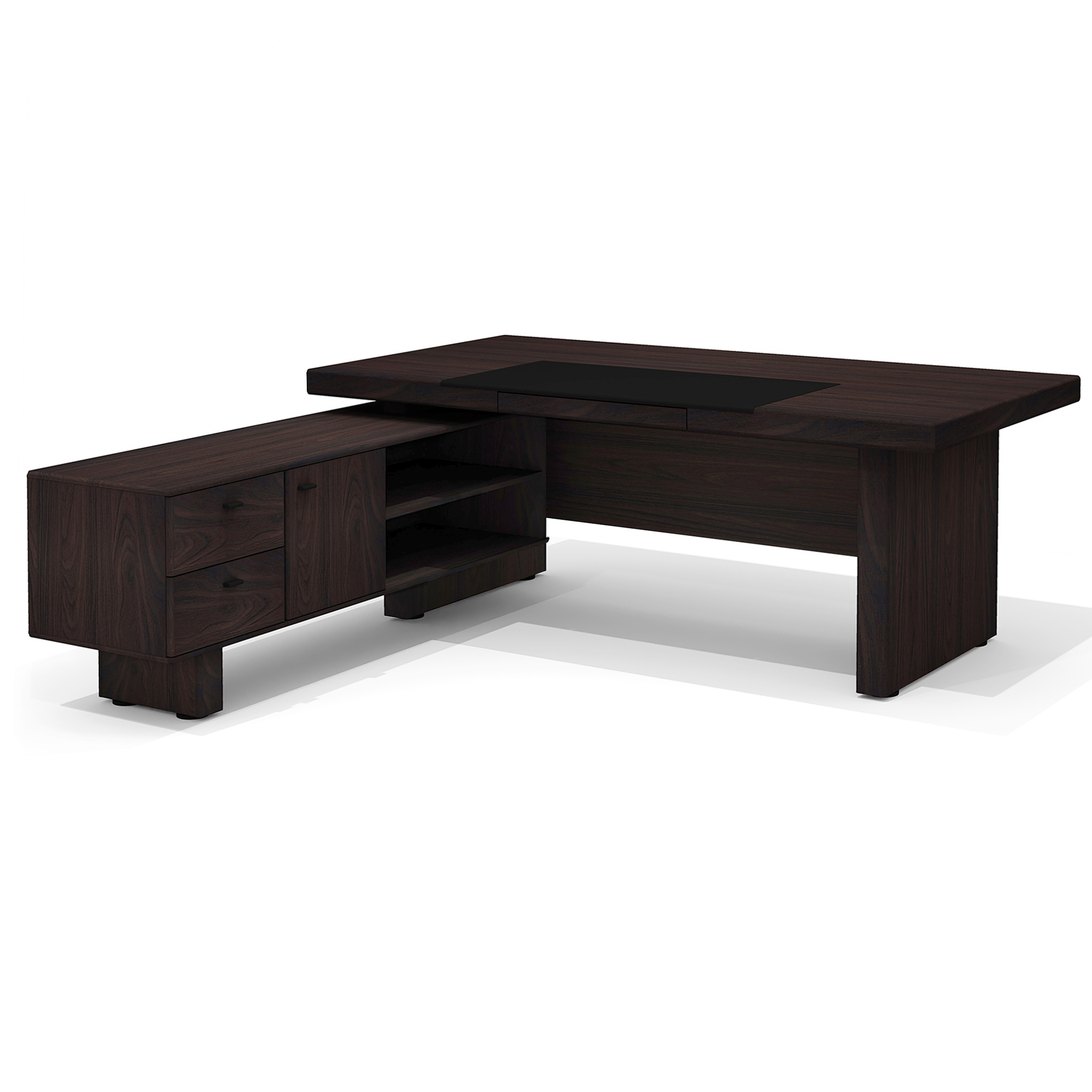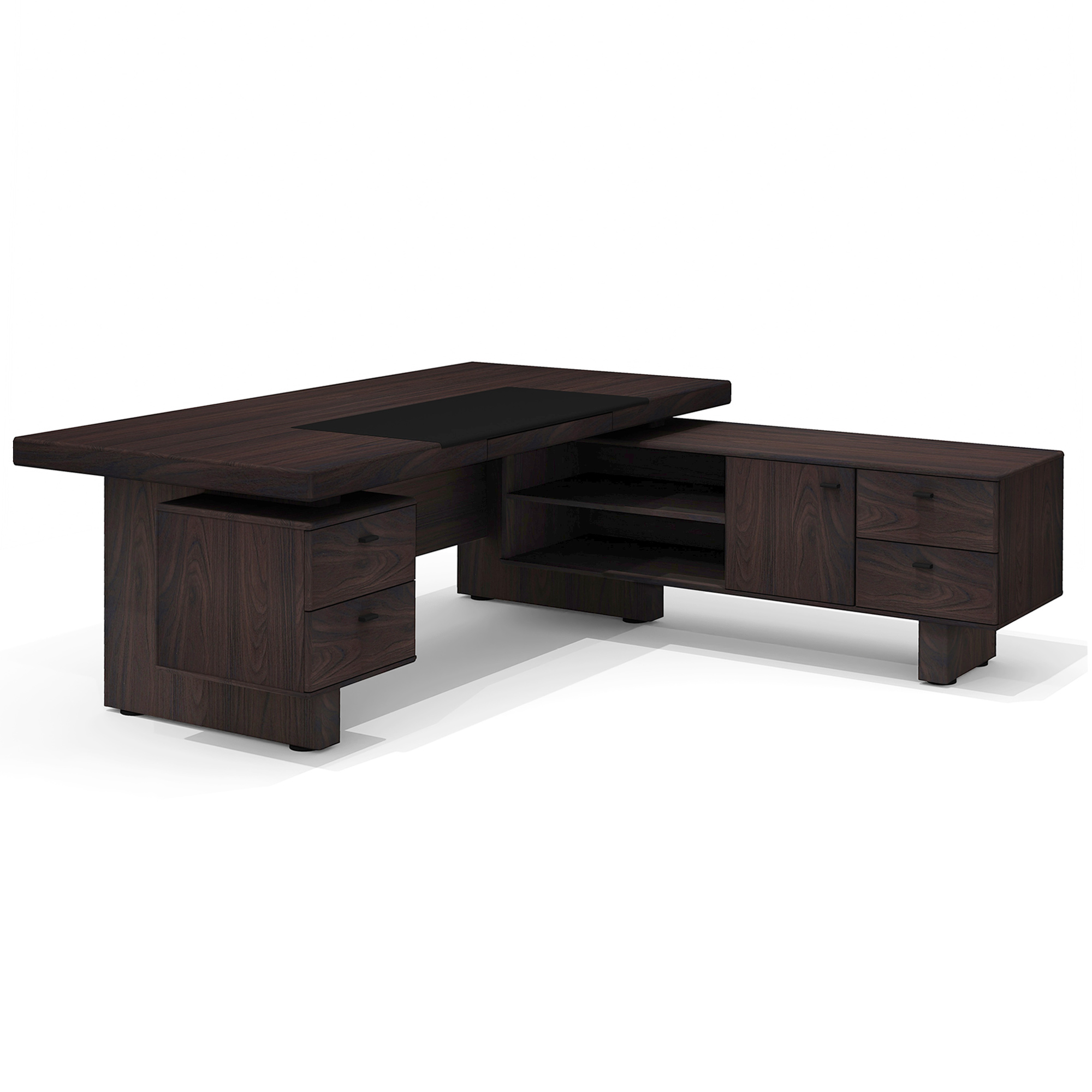 - Цвет экокожи/ткани: черная экокожа (бювар), тёмно-серая ткань (обивка днища выдвижных ящиков).