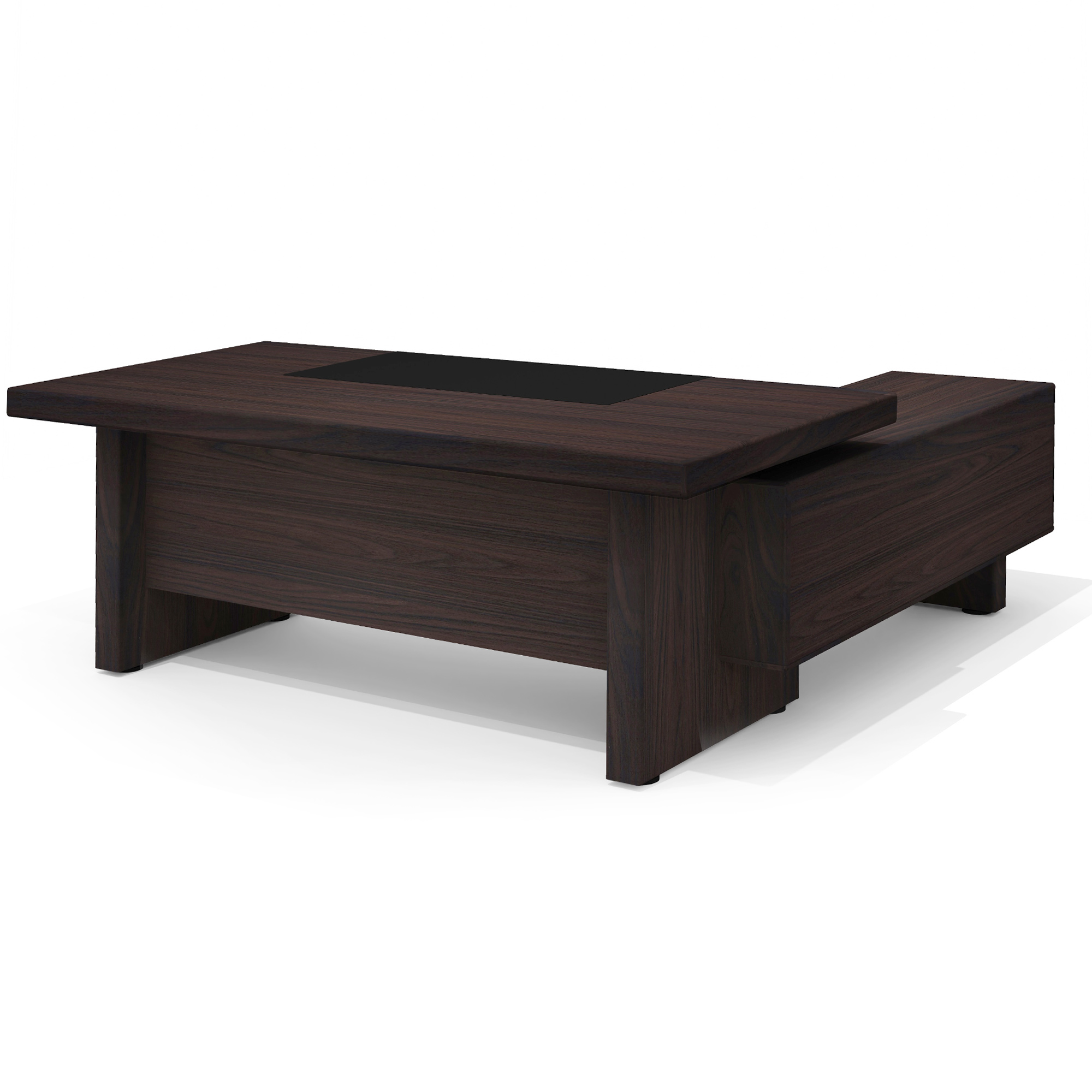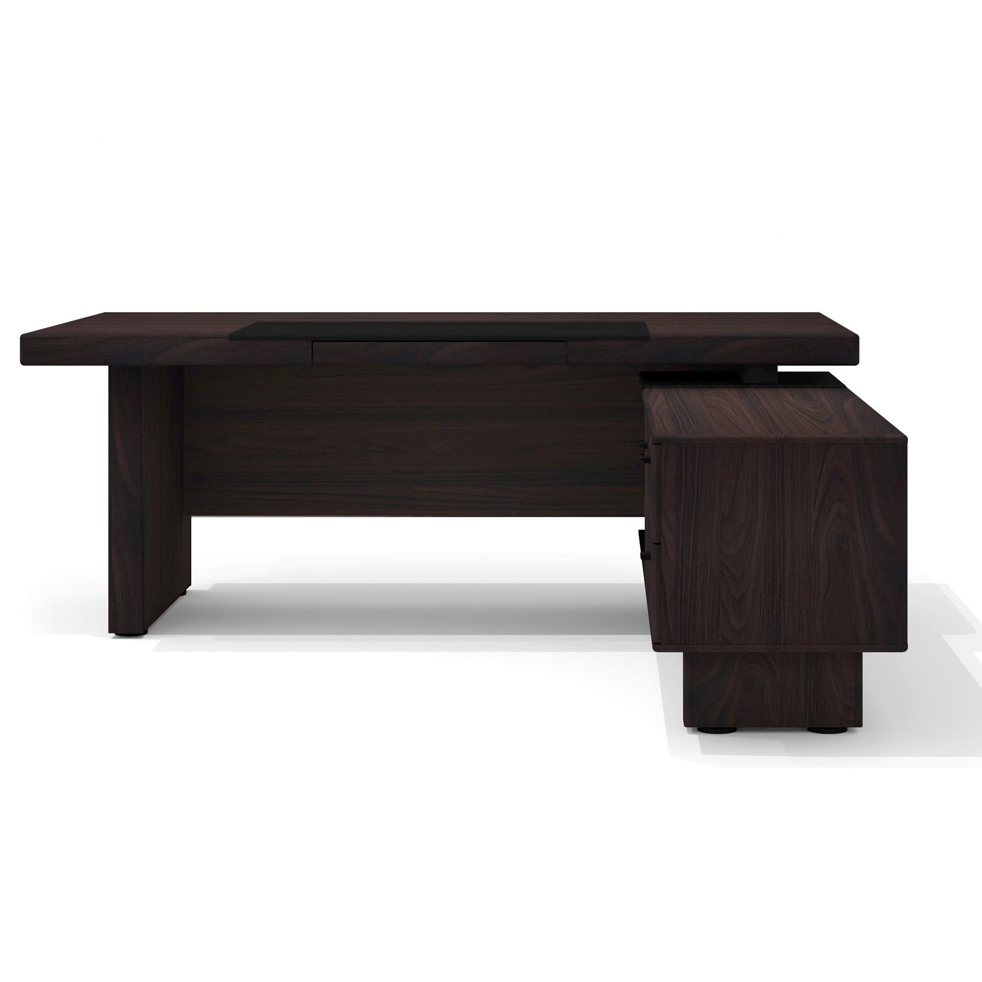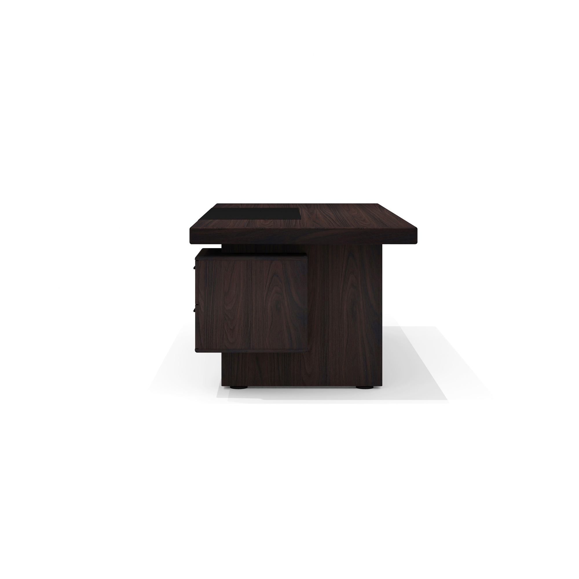 - Цвет экокожи/ткани: черная экокожа (бювар), тёмно-серая ткань (обивка днища выдвижных ящиков).