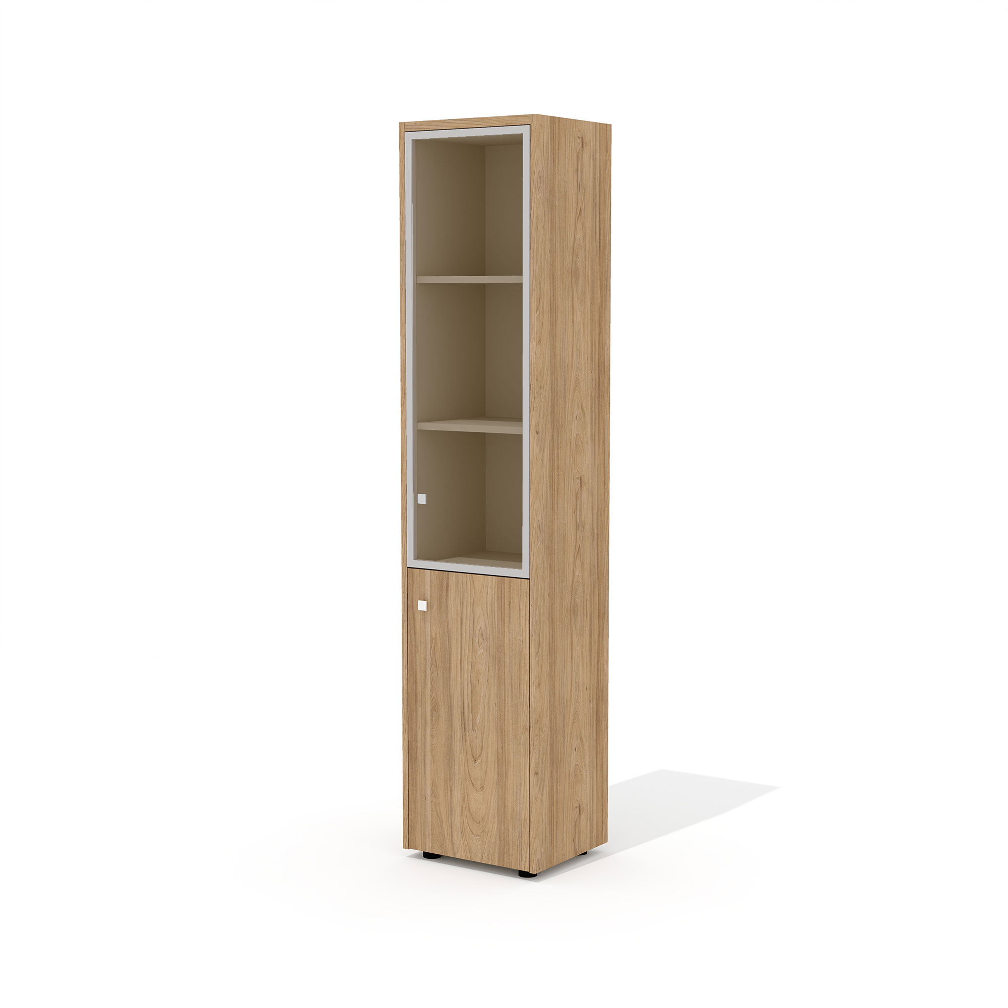 Шкаф для документов узкий со стеклом (комплектация 11) Рио Директ швейцарский вяз / беж / стекло тонированное бронза
