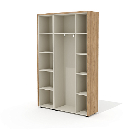 • Наполнение: отделение для одежды с полкой, выдвижной штангой и 4 полками, и отделение с 4 полками (5-ю нишами).