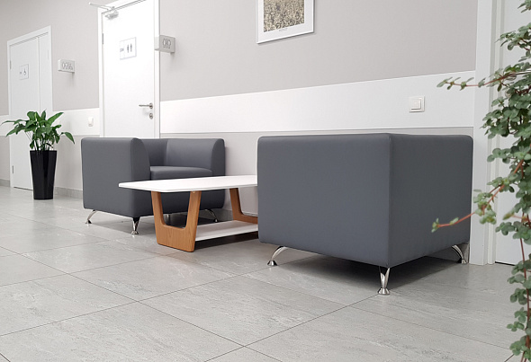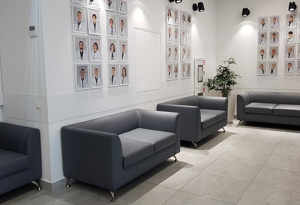 В кабинет главного врача поставили мебель из коллекции Grand, а кабинеты сотрудников клиники оснастили мебелью серии Rio Base. Рабочие места в небольшом call-центре клиники оборудовали с помощью специализированной серии Deli. Для оснащения коридоров и зон ожидания мы изготовили диваны «Ева» в сером цвете и поставили оригинальные журнальные столики. Мебель гармонично вписалась в интерьер и обеспечила комфорт посетителям клиники.